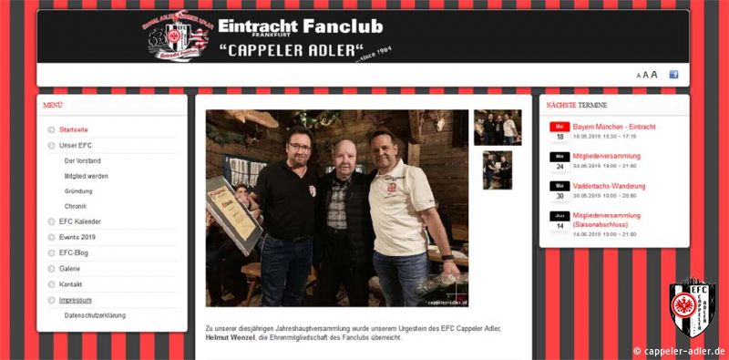 Neue Webpräsenz Es ist soweit, auch unser EFC geht mit der Zeit und verändert sich. Seit Mai 2019 sind wir mit unserem neuen Design der Webseite am Start. Vorher/Nachher: Alte Webseite Neue Webseite