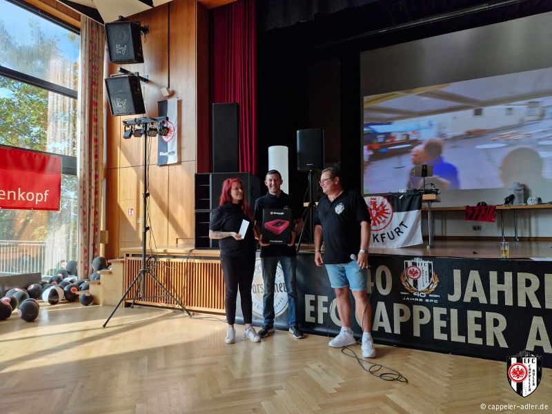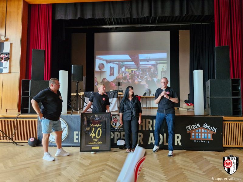 Ebenfalls bedanken wollen wir uns bei der Fanbetreuung  und Fanvertretung von Eintracht Frankfurt für die tollen Geschenke und persönlichen Glückwünsche. Zu guter Letzt auch noch einen großen Dank an die Traditionsspieler Ralf Weber, Manni Binz, Uwe Bindewald und Maurizio Gaudino die uns einen Besuch abstatteten und in einem tollen Interview Rede und Antwort standen.