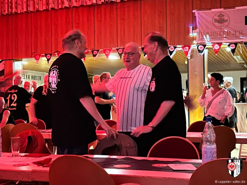 Ebenfalls bedanken wollen wir uns bei der Fanbetreuung  und Fanvertretung von Eintracht Frankfurt für die tollen Geschenke und persönlichen Glückwünsche. Zu guter Letzt auch noch einen großen Dank an die Traditionsspieler Ralf Weber, Manni Binz, Uwe Bindewald und Maurizio Gaudino die uns einen Besuch abstatteten und in einem tollen Interview Rede und Antwort standen.